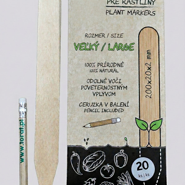 Sú absolútne ideálne na zreteľné označenie vašich priesad zeleniny, byliniek, okrasných rastlín či dokonca menších stromčekov a kríkov. Obrovskou výhodou je ich ekologický rozmer a znovupoužiteľnosť. Priamo v balení nájdete praktickú ceruzku s gumou. Nápis jednoducho vygumujete a menovku môžete bez problémov použiť v ďalšej sezóne pre úplne inú odrodu.